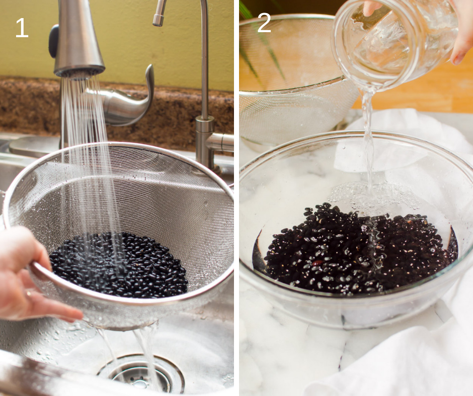 Before you soak your beans, give them a good rinse to get all the dirt and stuff off and pick through your dry beans to make sure there aren't any little rocks trying to hang out in your dinner (black beans are a bit notorious for having little rocks in them).